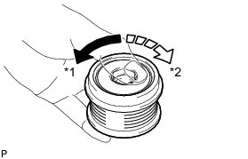 (a) Hold the center of the pulley, and confirm that the outer ring turns counterclockwise and does not turn clockwise.