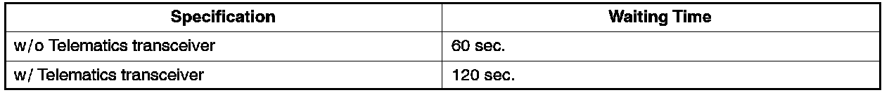 NOTICE: After the engine switch is turned off, the display and navigation module display (HDD navigation system) records various types of memory and settings. As a result, after turning the engine switch off, make sure to wait for the time specified in the following table before disconnecting the cable from the negative (-) battery terminal. Waiting Time before Disconnecting Cable from Negative (-) Battery Terminal