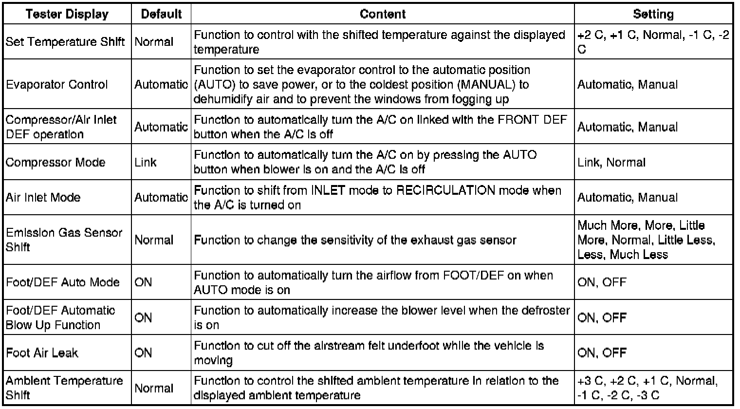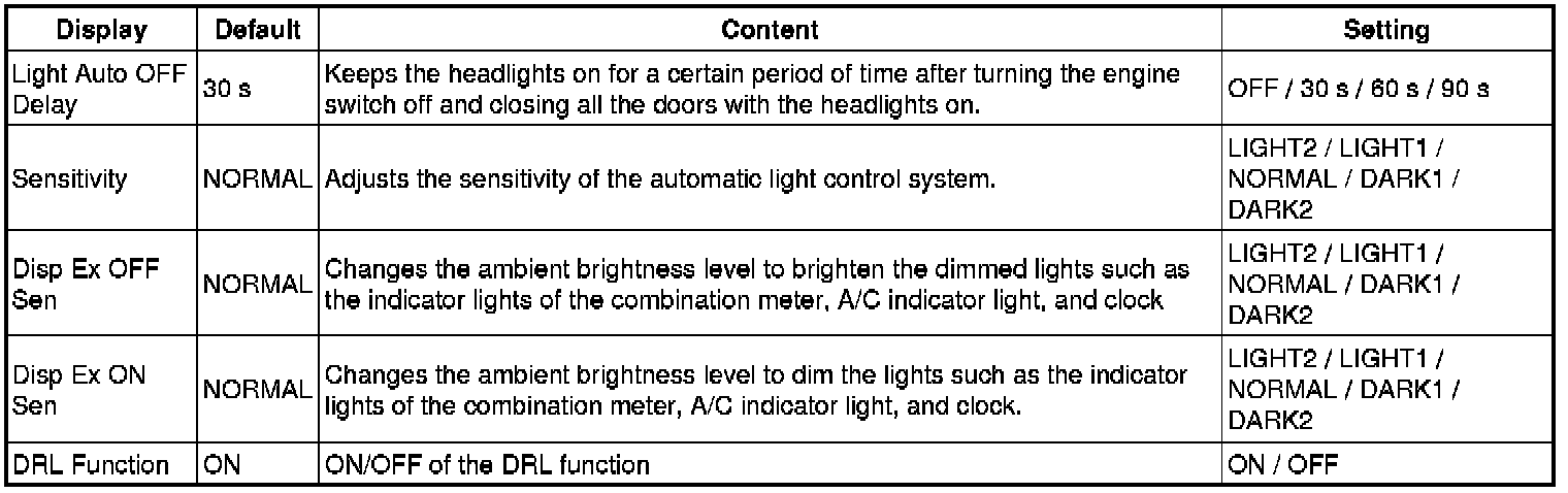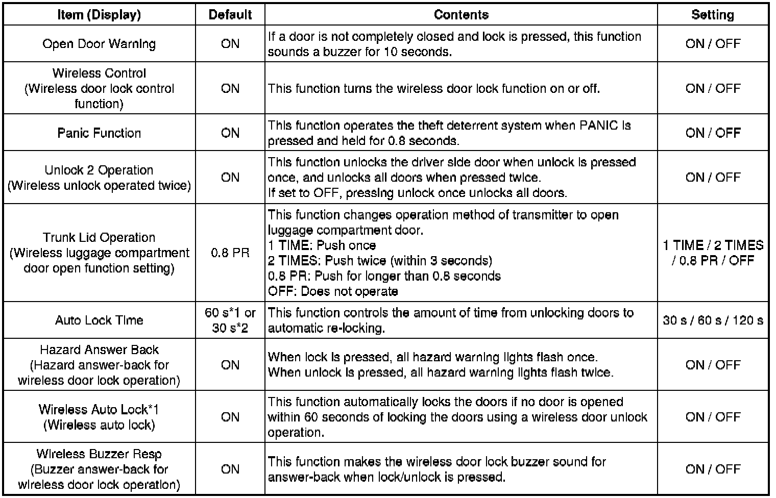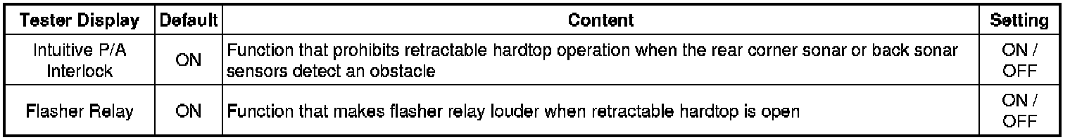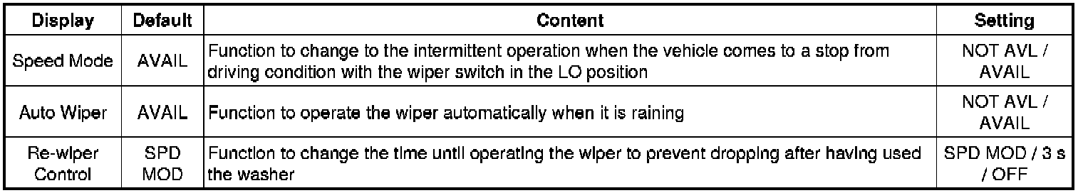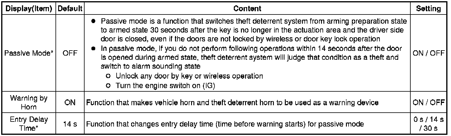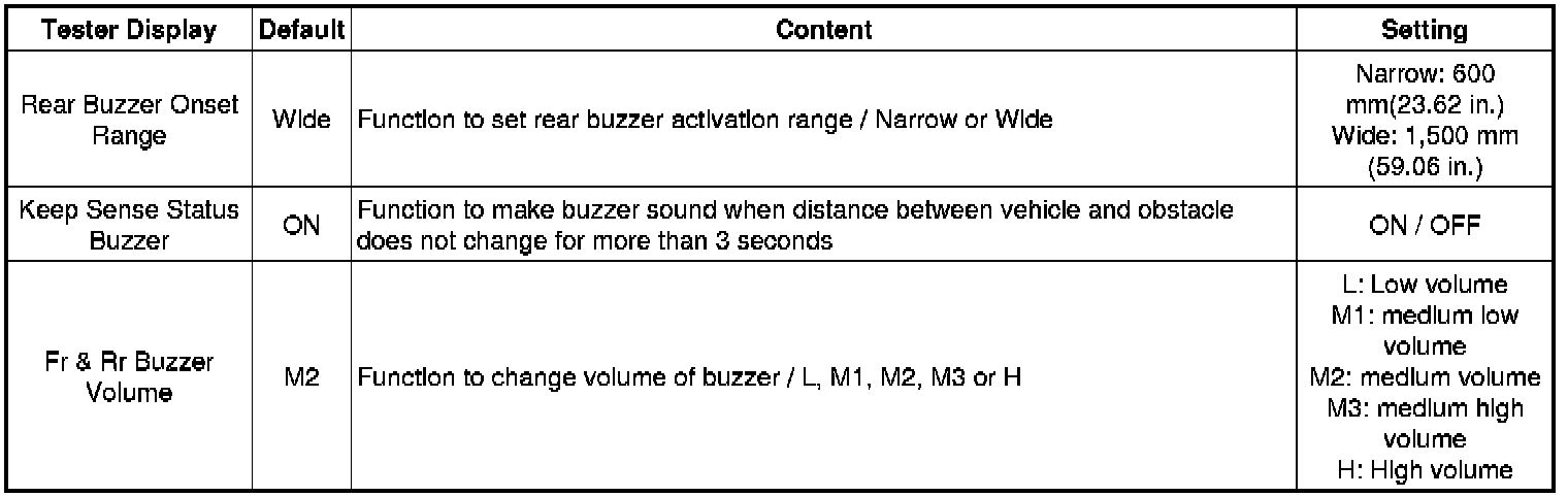 * When either the cable connected to the battery terminal or the combination meter assembly connector is disconnected, these buzzers are set on (enabled).
