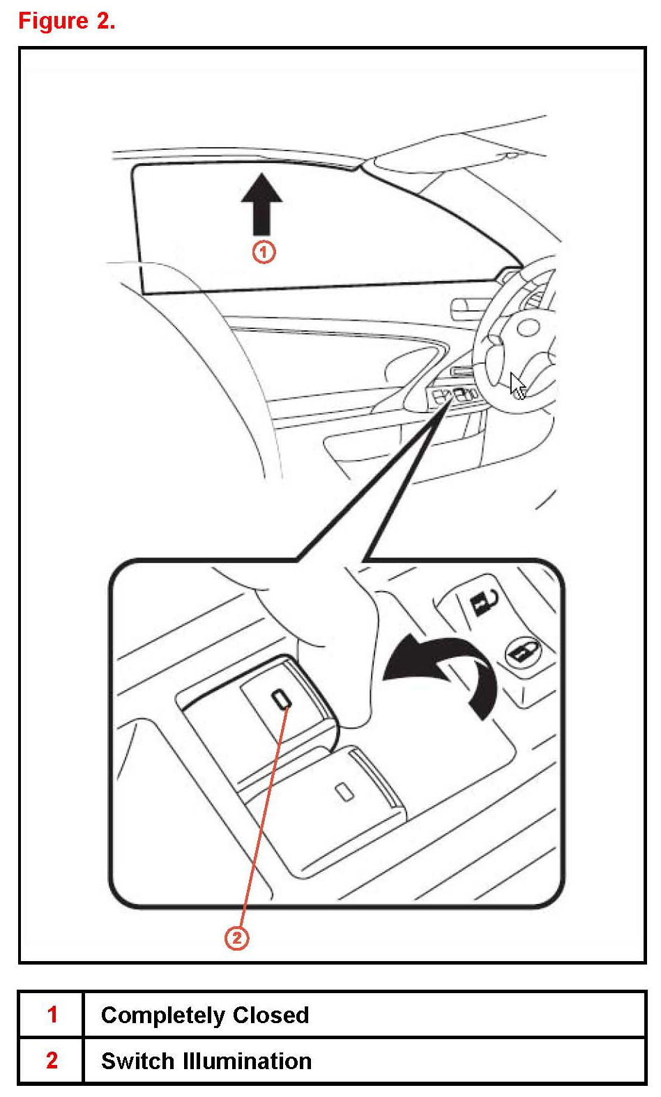 4. Pull "UP" the driver's door power window switch until the window closes, and hold it until the switch stops blinking and remains illuminated.