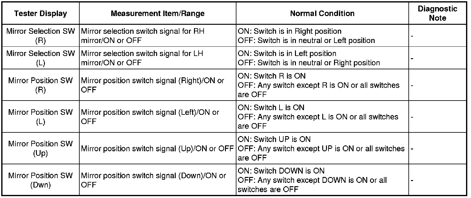 MIRROR: POWER MIRROR CONTROL SYSTEM (w/ Memory): DATA LIST / ACTIVE TEST