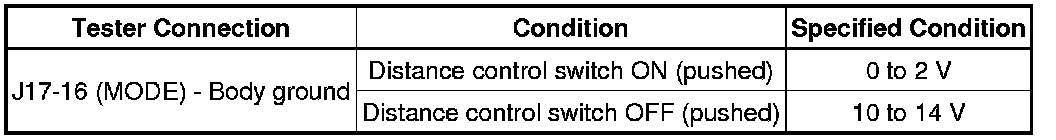 CRUISE CONTROL: DYNAMIC RADAR CRUISE CONTROL SYSTEM: Distance Control Switch Circuit