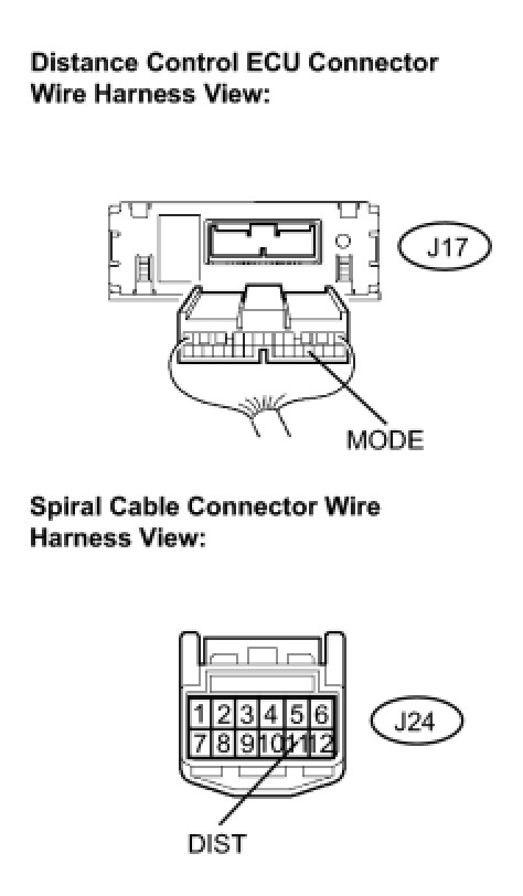 4. CHECK HARNESS AND CONNECTOR (DISTANCE CONTROL ECU - SPIRAL CABLE)
