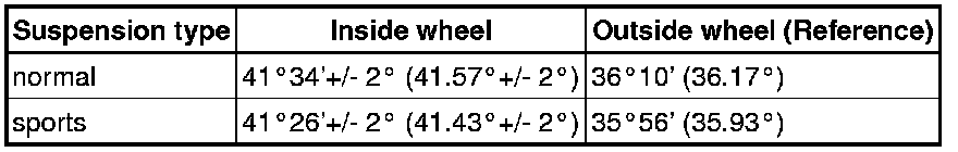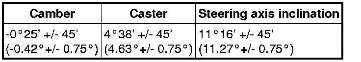 * The maximum tolerance of right and left difference for the camber and caster is 30' (0.5°) or less.
