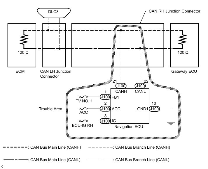 NG -- REPAIR OR REPLACE CAN BUS BRANCH WIRE OR CONNECTOR (NAVIGATION ECU BRANCH WIRE)
