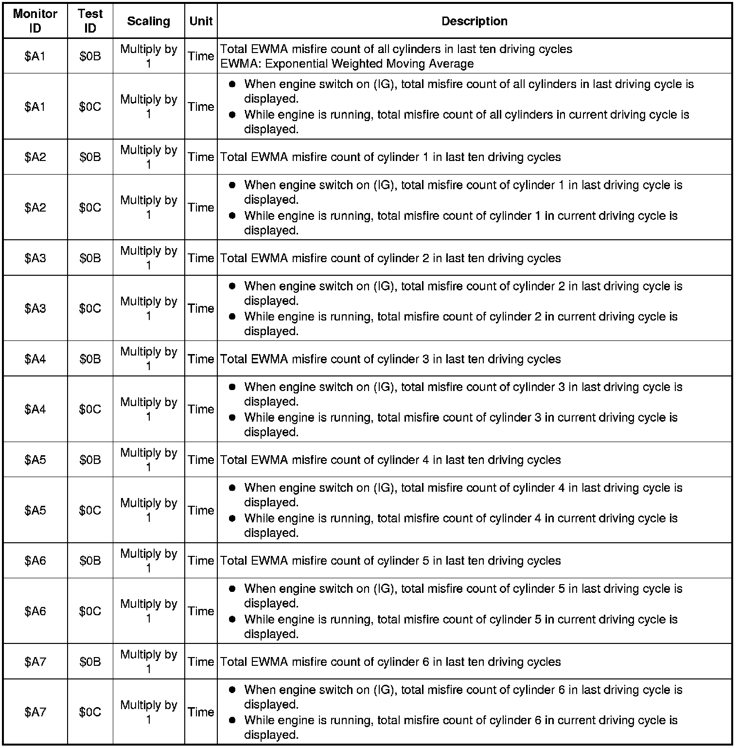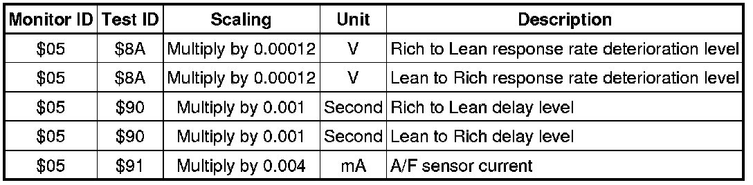 If you use a generic scan tool, multiply the value by the scaling value listed below.