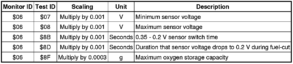 The purpose of the monitor result (mode 06) is to allow access to the results for on-board diagnostic monitoring tests of specific components/systems that are not continuously monitored. Examples are catalyst, evaporative emission (EVAP) and thermostat.