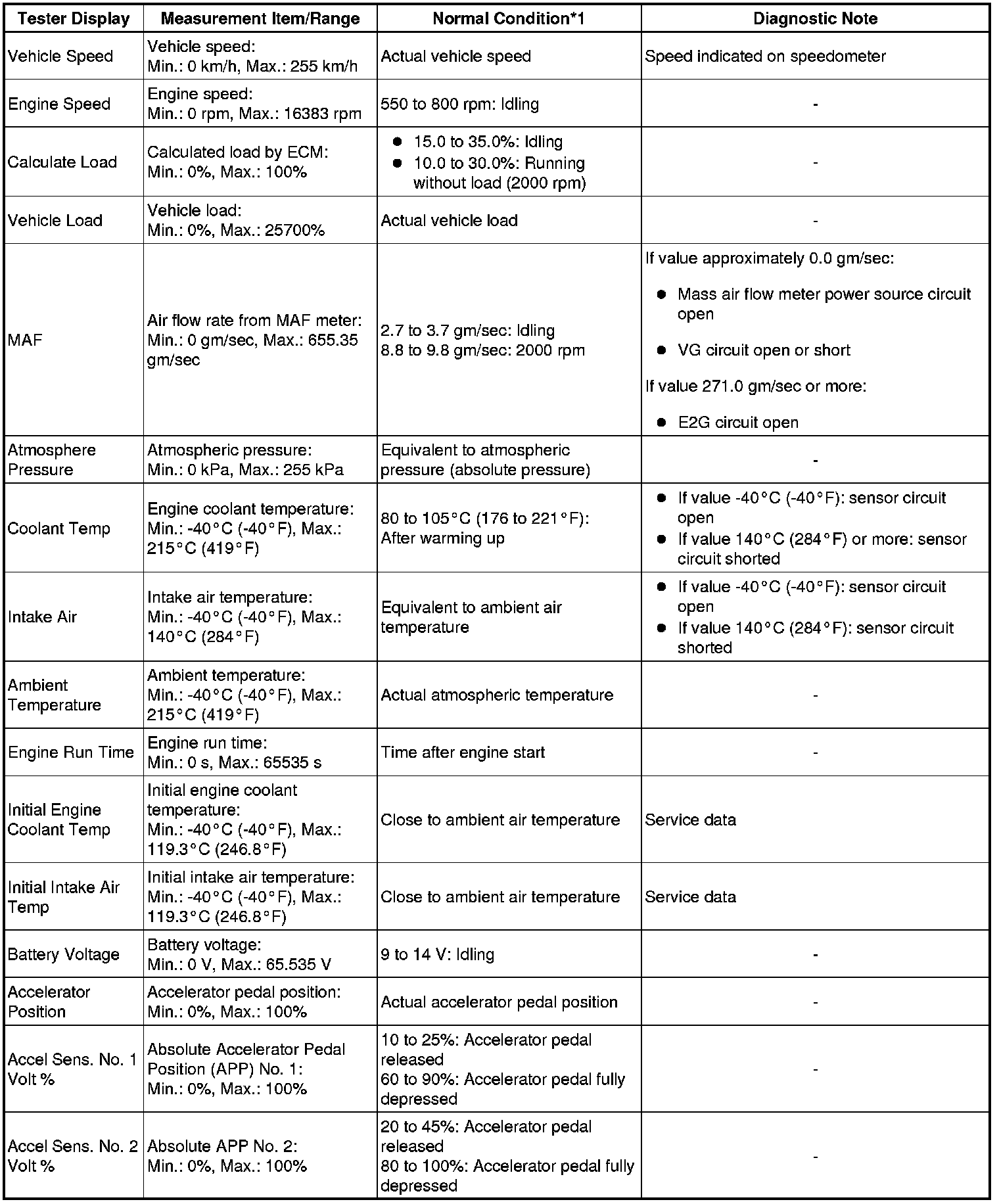 * *1: If no idling conditions are specified, the transmission gear selector lever should be in the N or P position, and the A/C switch and all accessory switches should be OFF.