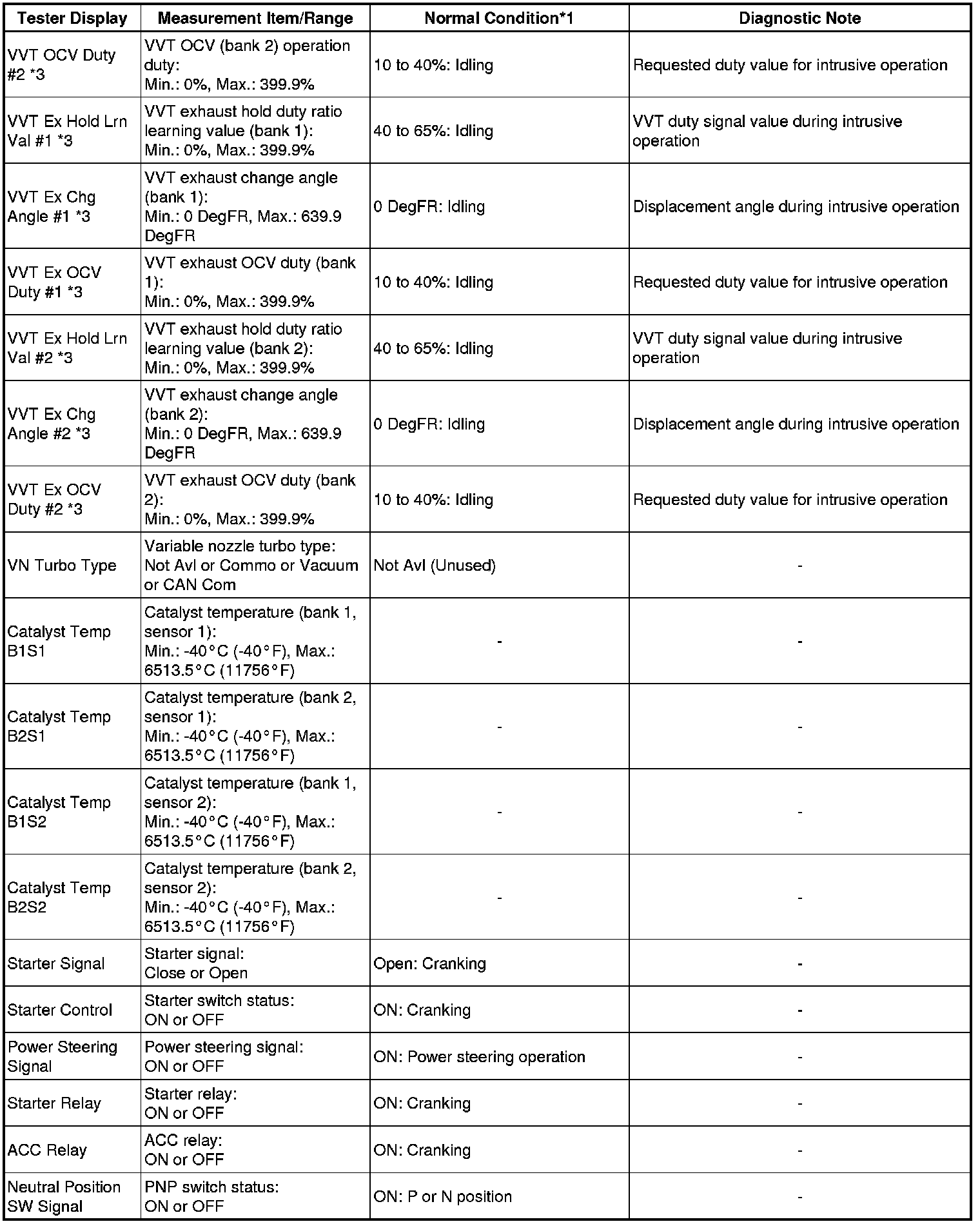 * *3: Data List values are only displayed when performing the following Active Test: Control the VVT System (Bank 1, 2), Control the VVT Linear (Bank 1, 2) and Control the VVT Exhaust Linear (Bank 1, 2). For other Active Test, the Data List value will be 0.