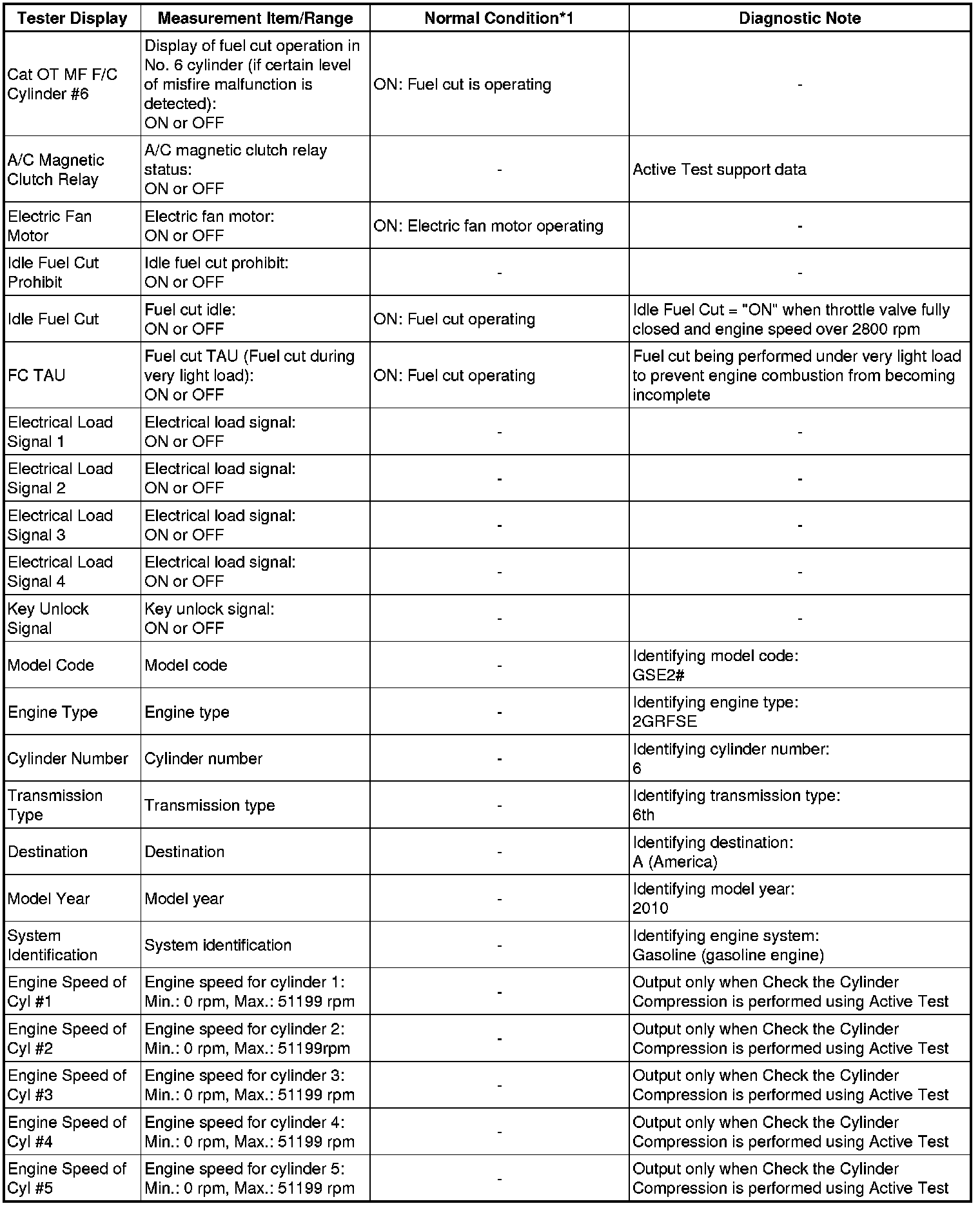 *: When cranking the engine, each cylinder measures the engine rpm. In this Active Test, the fuel and ignition of all cylinders are cut, and cranking occurs for approximately 10 seconds. Then, each cylinder measures the engine rpm. If a cylinder's engine rpm is higher than the others, that cylinder's compression pressure is compared to the others, and is determined whether it is low or not.