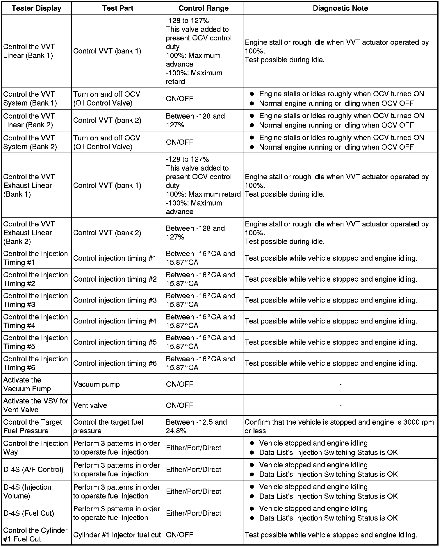 2GR-FSE ENGINE CONTROL SYSTEM: SFI SYSTEM: DATA LIST / ACTIVE TEST
