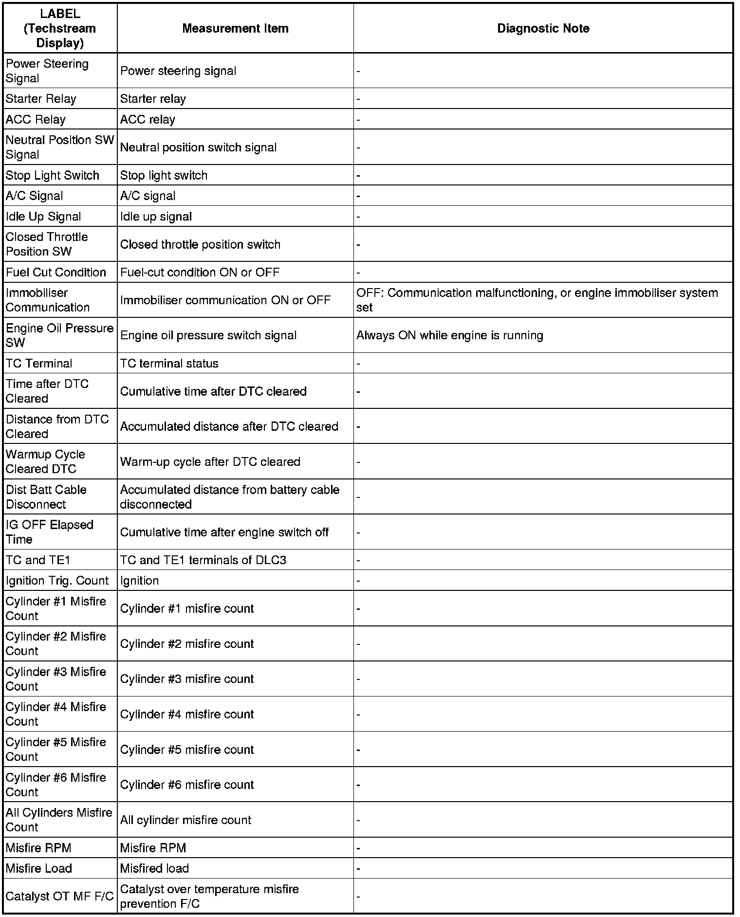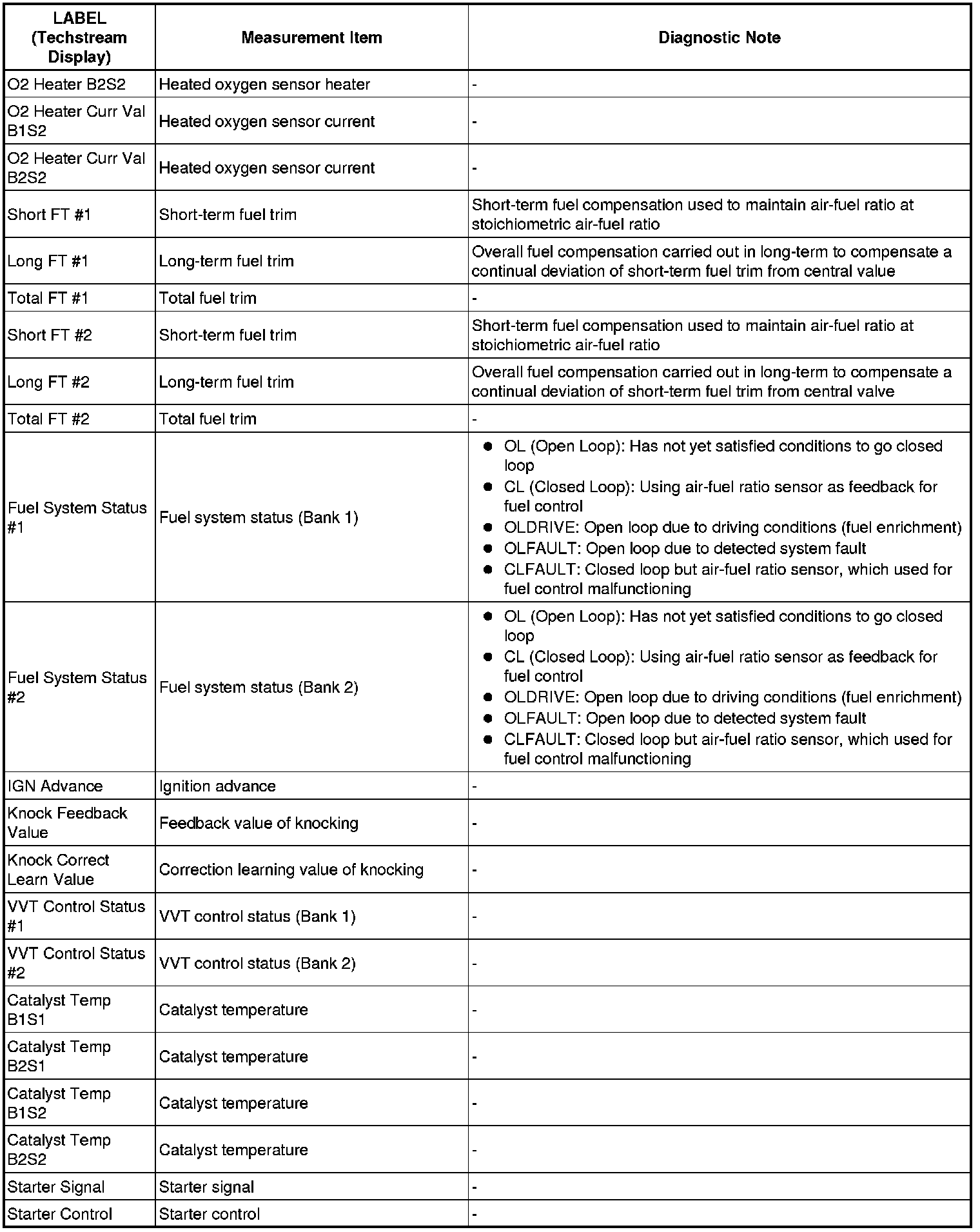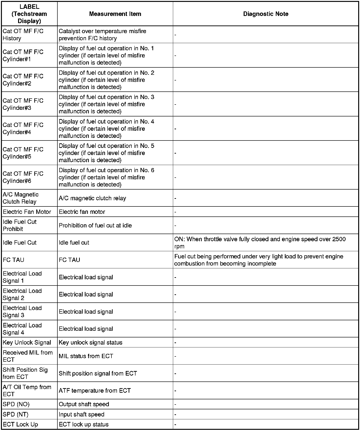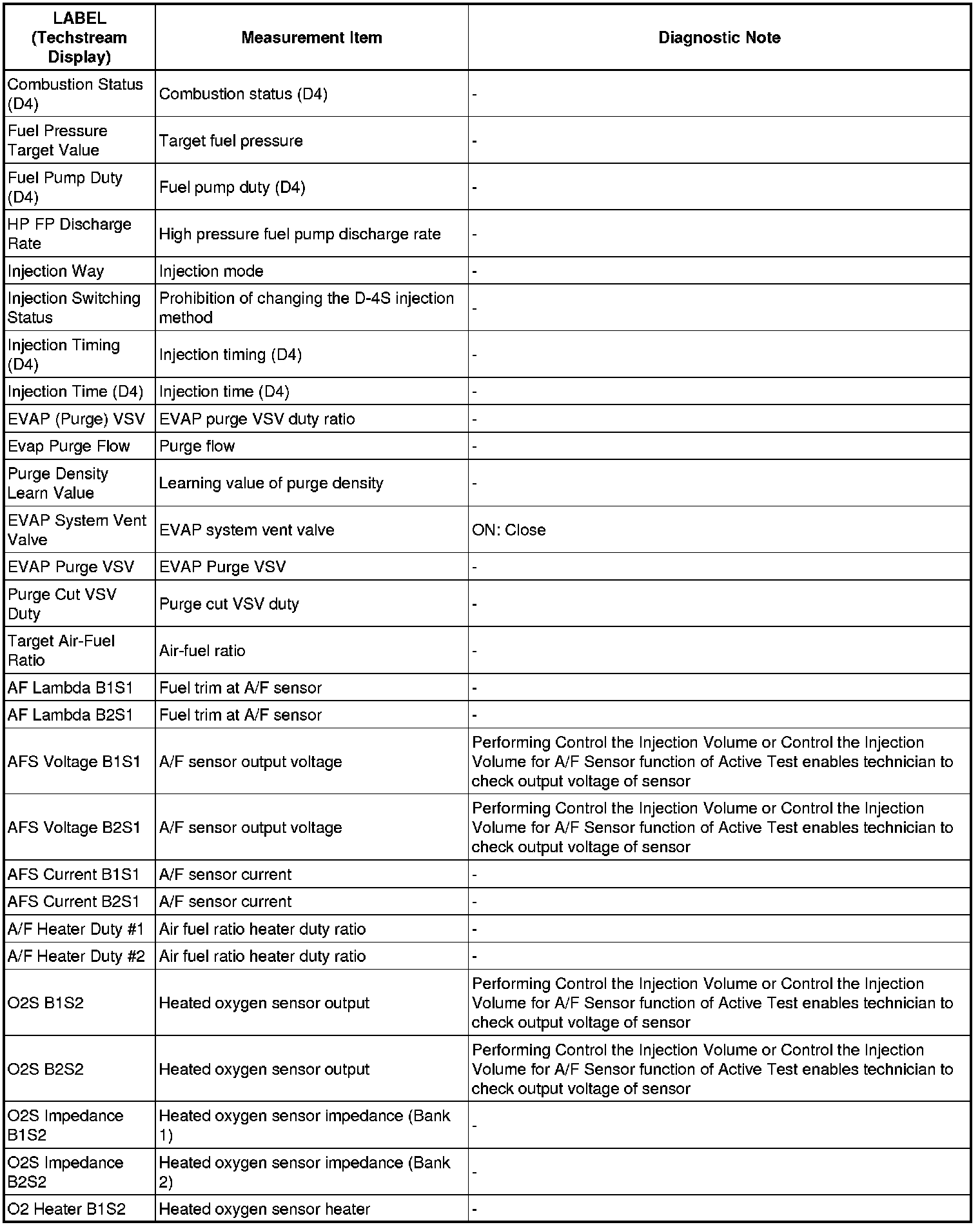 2GR-FSE ENGINE CONTROL SYSTEM: SFI SYSTEM: FREEZE FRAME DATA