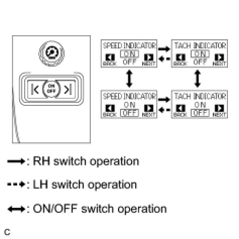 (3) Turn the SPEED INDICATOR or TACH INDICATOR function on again by using the ON/OFF switch.