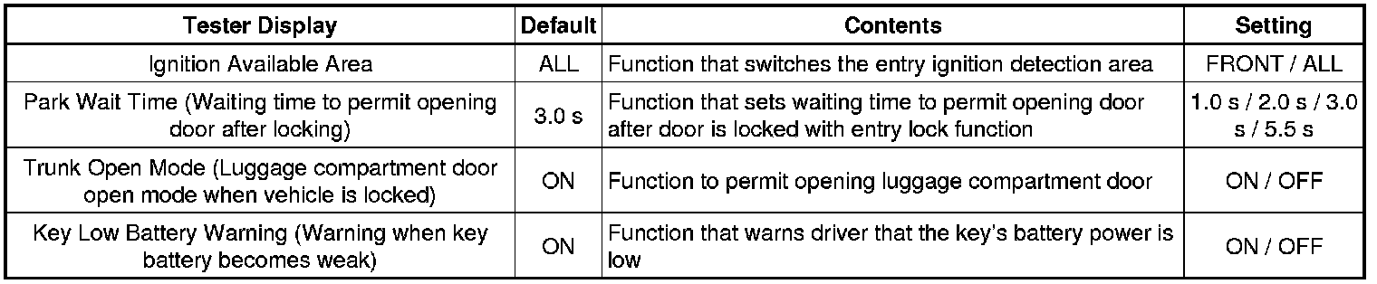 * *1: This function is linked with the power window key-linked function. If the power window key-linked function is set to OFF, the sliding roof key-linked function will not operate even when it is set to ON.