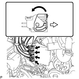 (b) Connect the 4 connectors to the injector driver. Move the lock levers in the direction indicated by the arrow to lock the 3 connectors.
