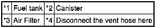 Disconnect the hose between the canister and fuel tank from the canister. Block the charcoal canister assembly side and conduct an inspection. In this way, the fuel tank can be excluded as an area suspected of causing fuel leaks.