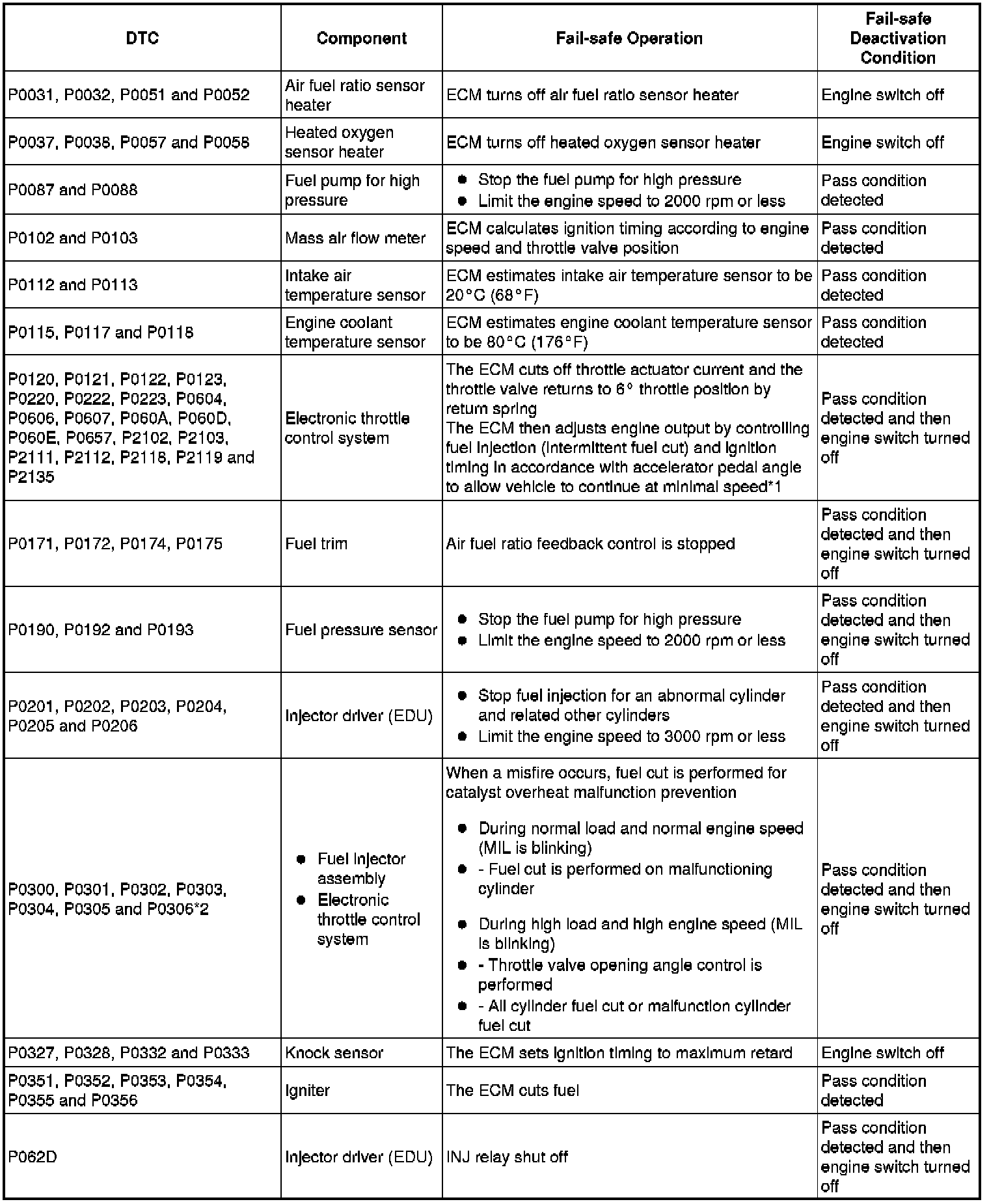 * *2: Misfire related fail-safe operations occur when catalyst overheat malfunctions occur.