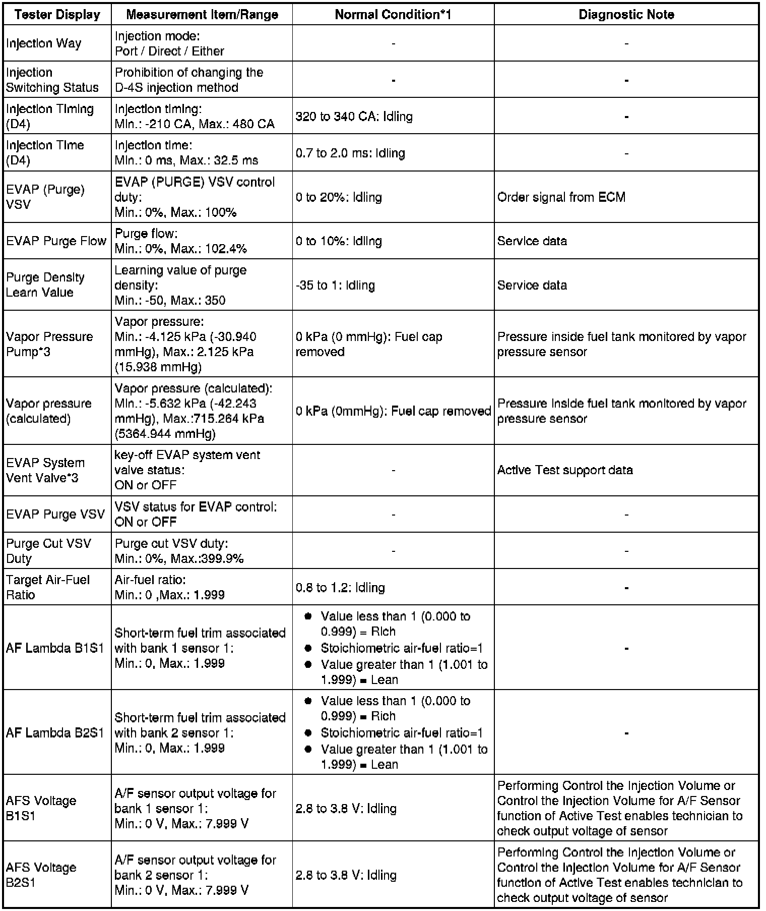 * *1: If no idling conditions are specified, the shift lever should be in N or P and the A/C switch and all accessory switches should be OFF.
