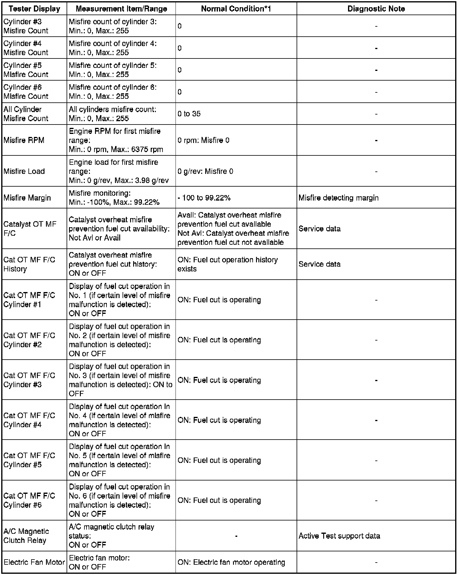 * *3: If the display of the Catalyst OT MF F/C item of the Data List is Not Avl, perform this Active Test with the vehicle stopped and the engine idling. If the display of the Catalyst OT MF F/C item of the Data List is Avail, perform this Active Test as described below.