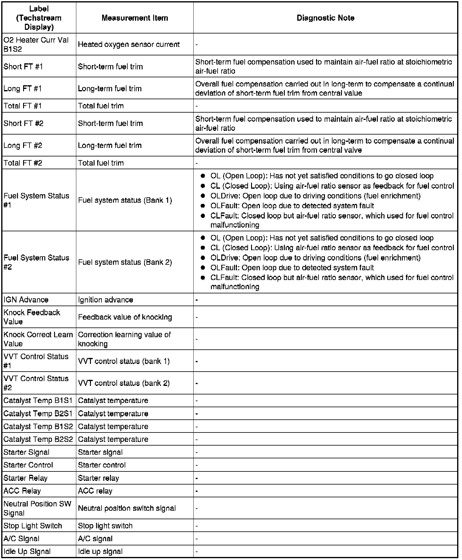 2GR-FSE ENGINE CONTROL: SFI SYSTEM: FREEZE FRAME DATA