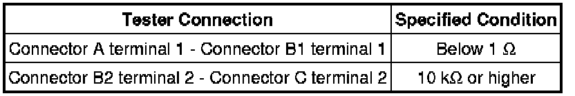 * If the results match the values specified above, an open circuit exists between terminal 1 of connector A and terminal 1 of connector C.