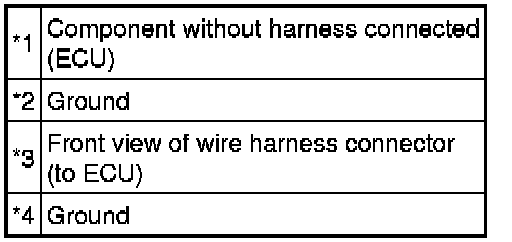 * The connector should not be disconnected from the ECU. Perform the inspection from the backside of the connector on the wire harness side.
