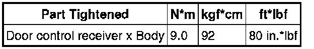 SPECIFICATIONS: DOOR LOCK: TORQUE SPECIFICATIONS