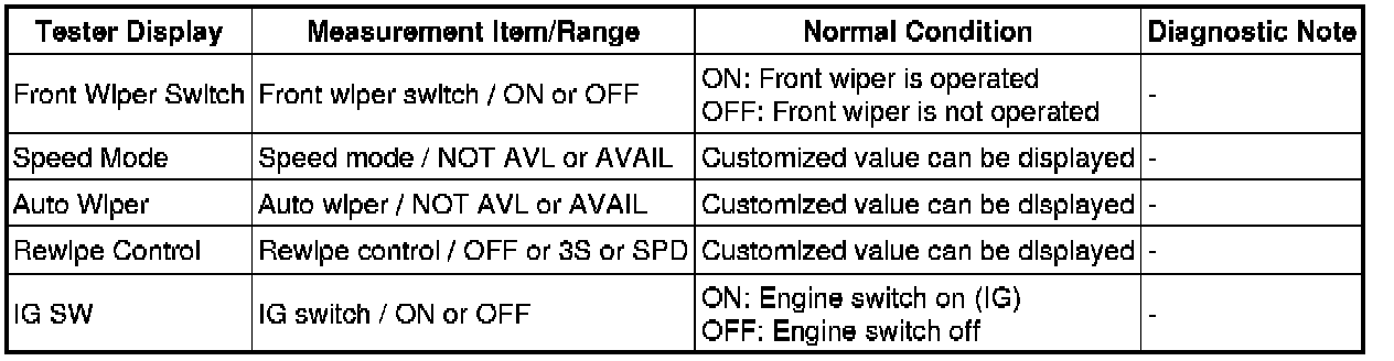 WIPER / WASHER: WIPER AND WASHER SYSTEM: DATA LIST / ACTIVE TEST