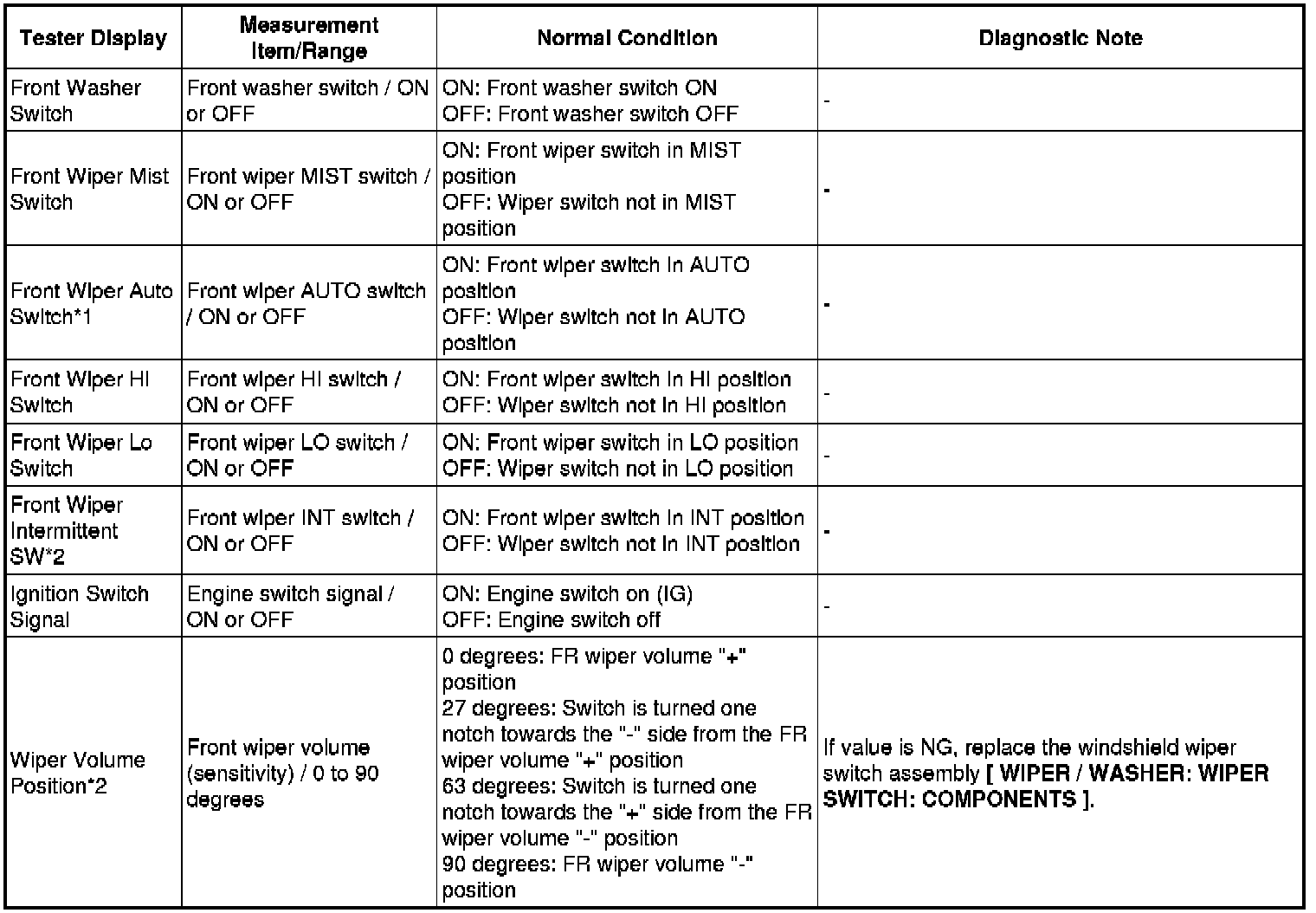 *2: W/O Auto Wiper System