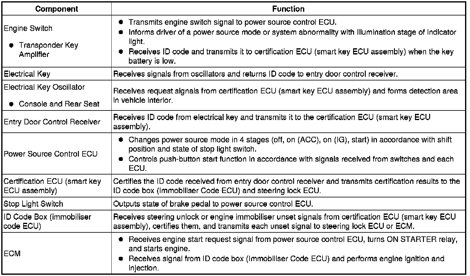 (f) The transponder key amplifier combines the key ID codes with the radio wave response, and transmits it to the certification ECU (smart key ECU assembly).