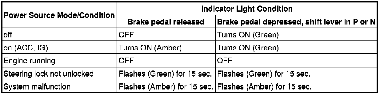 * The amber and green LEDs are for the indicator lights. The driver can check the present power source mode and whether the engine can start in accordance with the illumination state of the indicator light.
