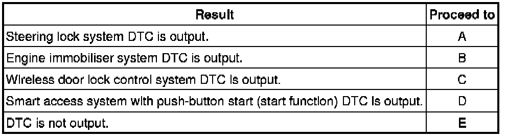 (b) Recheck for DTCs. Based on the DTCs output, try to cause the same steering lock system DTC, engine immobilizer system DTC, wireless door lock control system DTC or smart access system with push-button start (start function) DTC to be output by simulating the symptoms indicated by the DTCs.