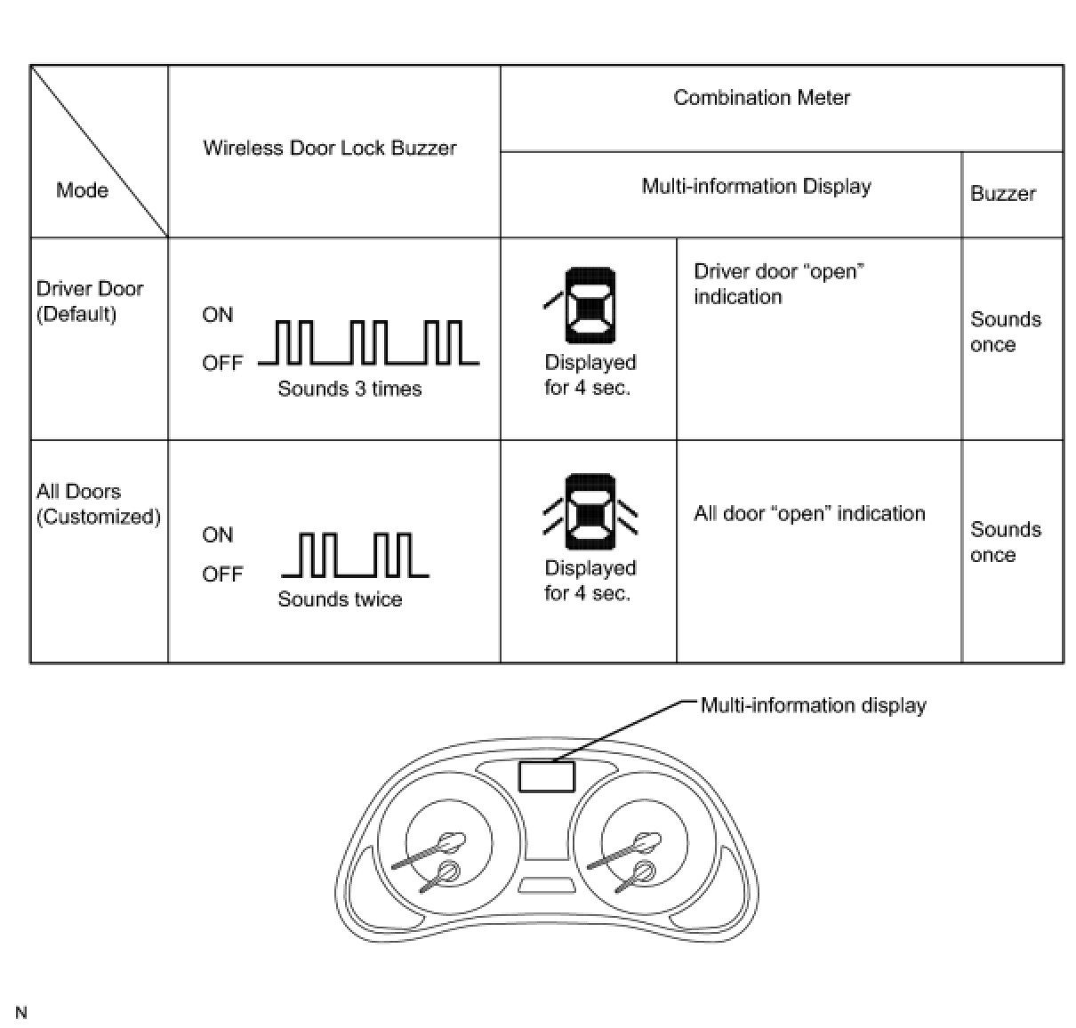 To return to the original condition, perform the procedure again. When the original condition is returned, the wireless door lock buzzer sounds once.