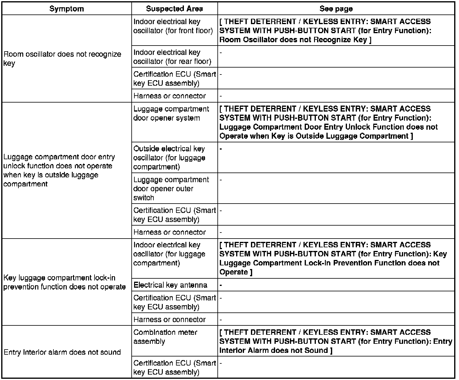 THEFT DETERRENT / KEYLESS ENTRY: SMART ACCESS SYSTEM WITH PUSH-BUTTON START (for Entry Function): PROBLEM SYMPTOMS TABLE