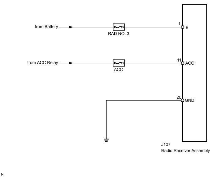 AUDIO / VIDEO: AUDIO AND VISUAL SYSTEM (w/o Navigation System): Radio Receiver Power Source Circuit