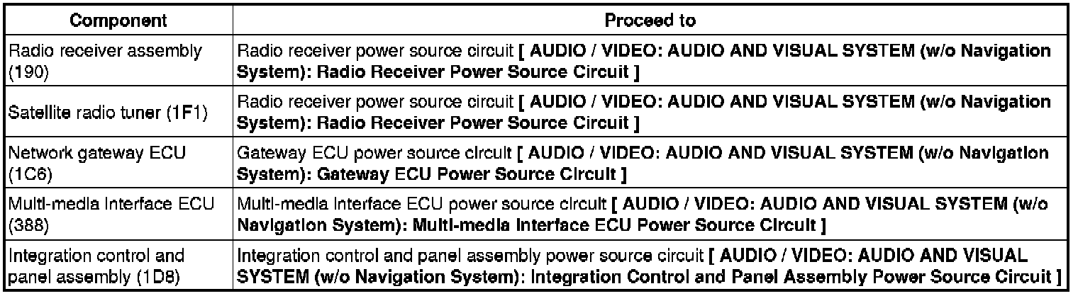 * For details of the connectors, refer to Terminals of ECU Audio and Visual System (w/o Navigation System).