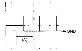 When the system is functioning normally, one wheel revolution generates 4 pulses. As the vehicle speed increases, the width indicated by (A) in the illustration narrows.