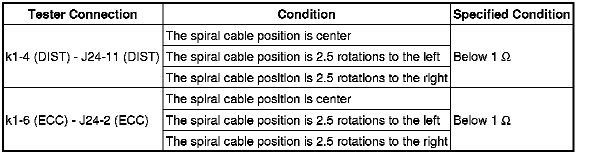 (b) Disconnect the k1 connector from the spiral cable.