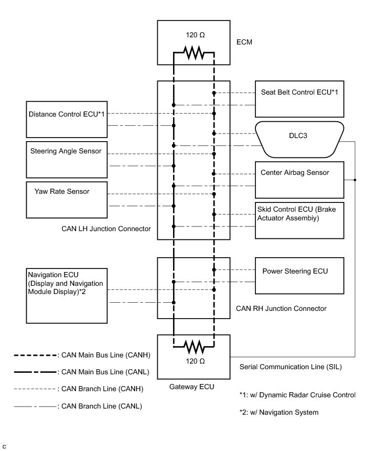 (1) The main bus line is a wire harness between the two terminating resistors on the bus (communication line). This is the main bus in the CAN communication system.