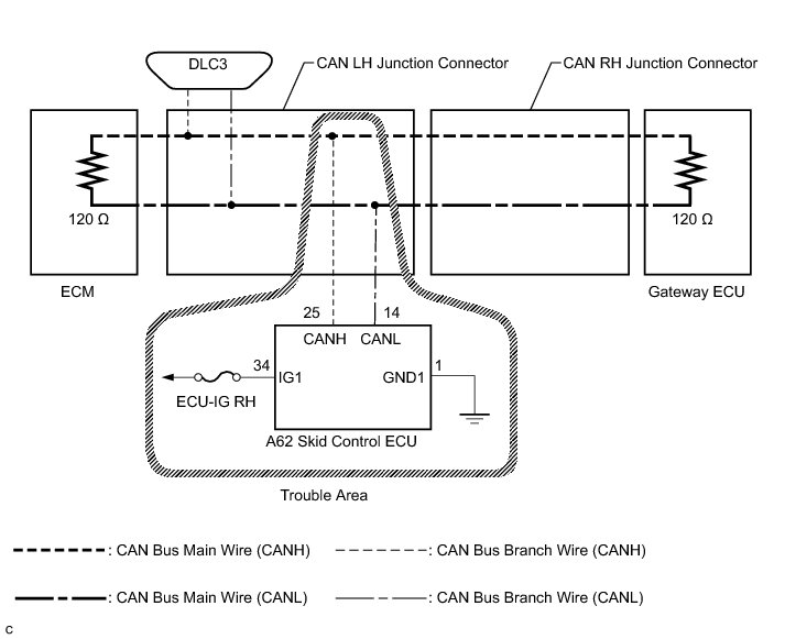 NG -- REPAIR OR REPLACE SKID CONTROL ECU BRANCH WIRE OR CONNECTOR (CANH, CANL)