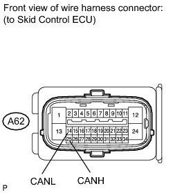 (b) Disconnect the brake actuator assembly (skid control ECU) connector (A62).