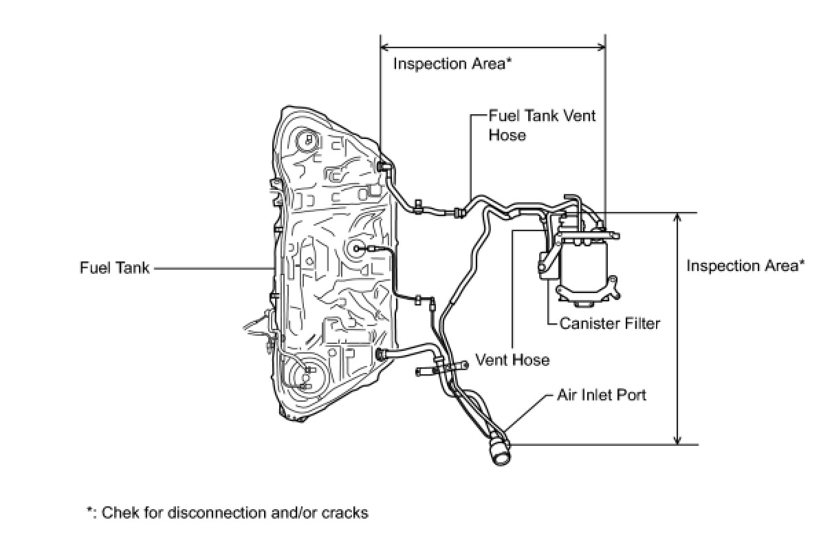 When replacing the canister, check the canister pump module interior and related pipes for water, fuel and other liquids. If liquids are present, check for disconnections and/or cracks in the following: 1) the pipe from the air inlet port to the canister pump module; 2) the canister filter; and 3) the fuel tank vent hose.