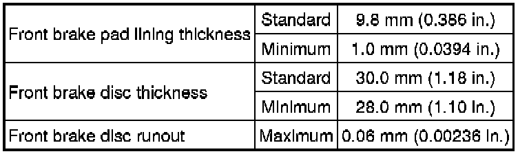 SPECIFICATIONS: BRAKE (FRONT): SERVICE DATA