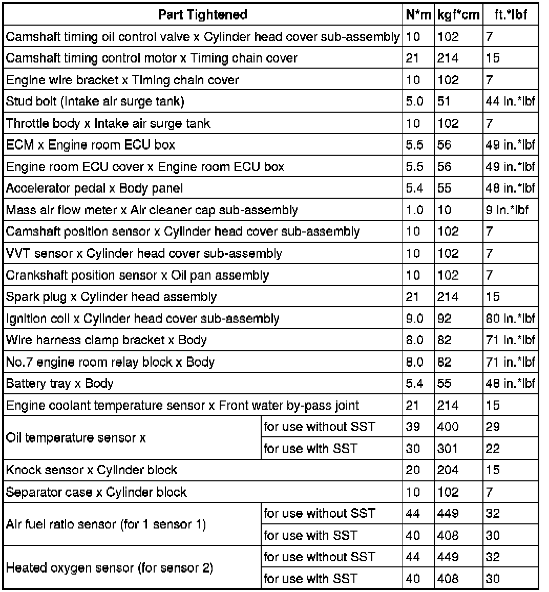 SPECIFICATIONS: 2UR-GSE ENGINE CONTROL: TORQUE SPECIFICATIONS