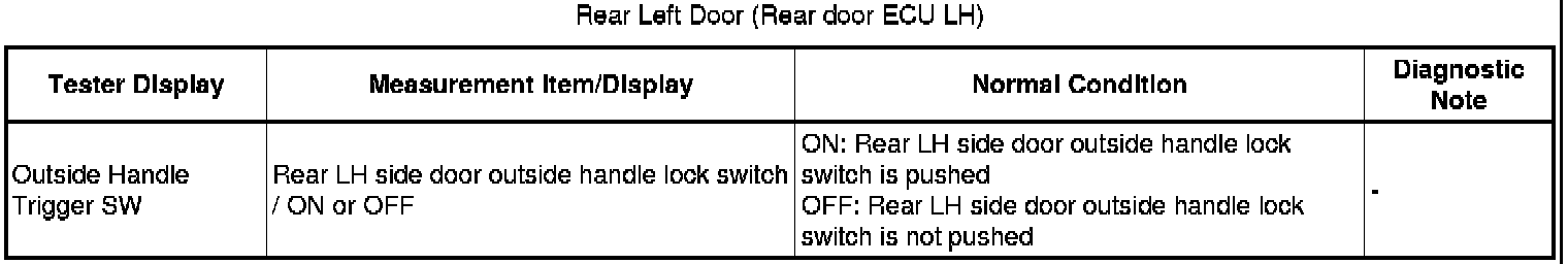 Refer to Rear Door LH Entry Lock and Unlock Functions do not Operate Rear Door LH Entry Lock and Unlock Functions do not Operate.