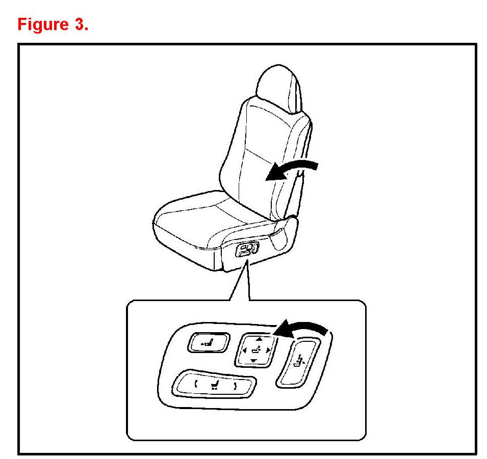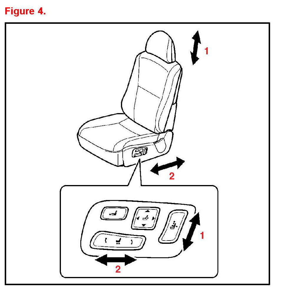 7. Operate the seat position control switch and check that the seat slides forward and rearward and that the beep is NOT heard. (Refer to 2 in figure 4.)