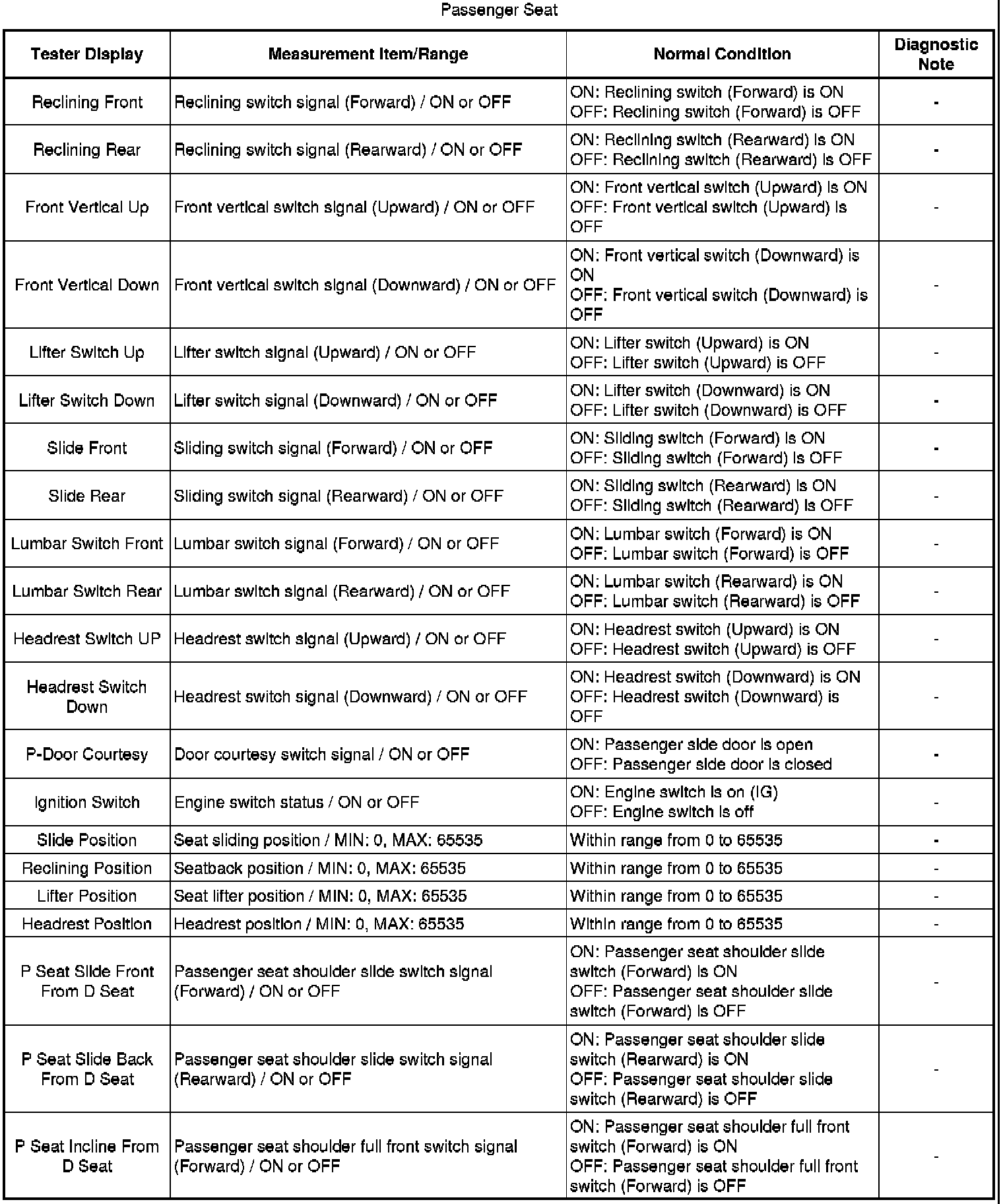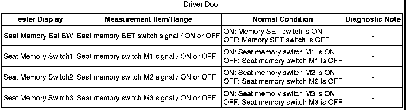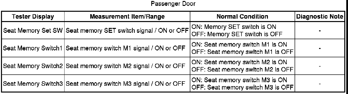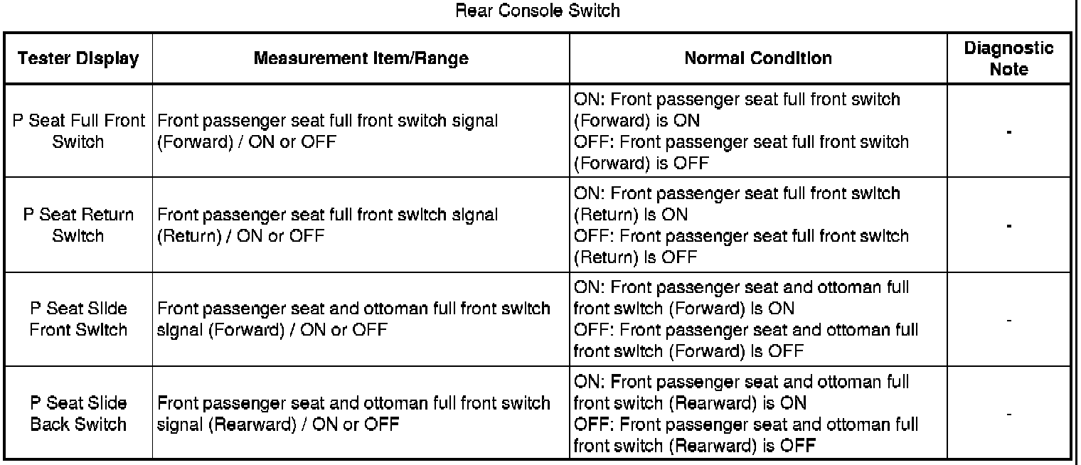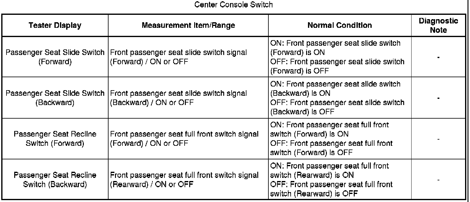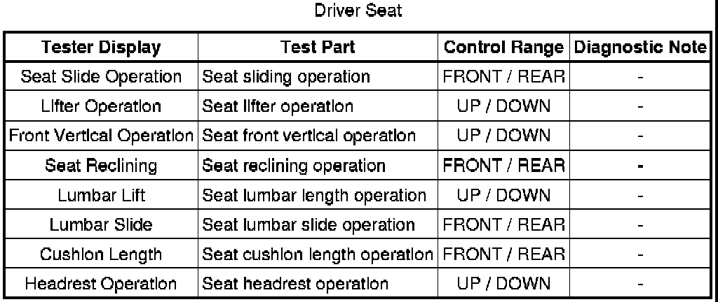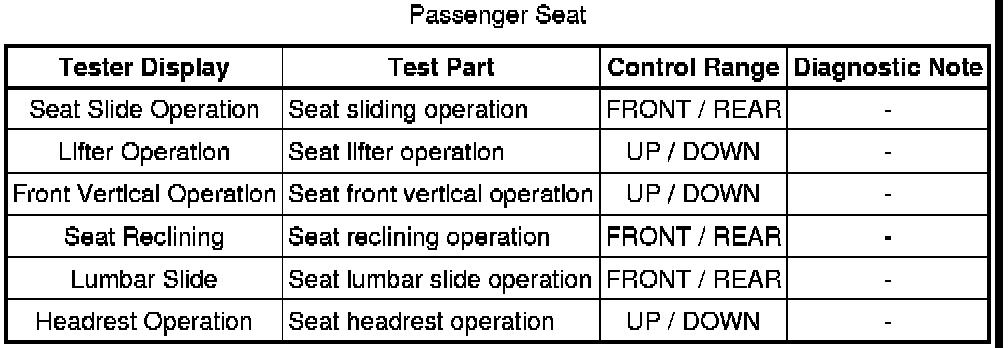 SEAT: FRONT POWER SEAT CONTROL SYSTEM: DATA LIST / ACTIVE TEST