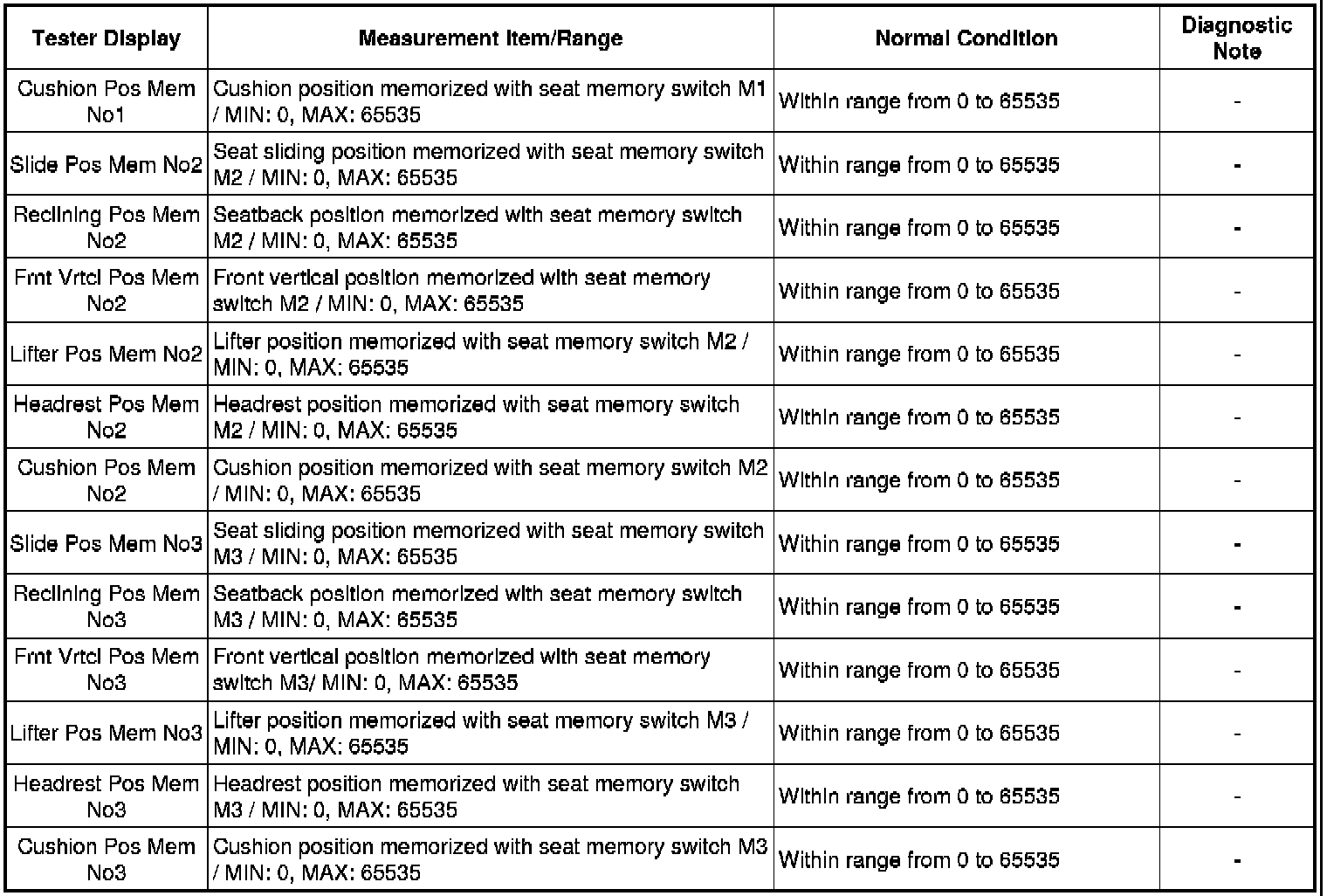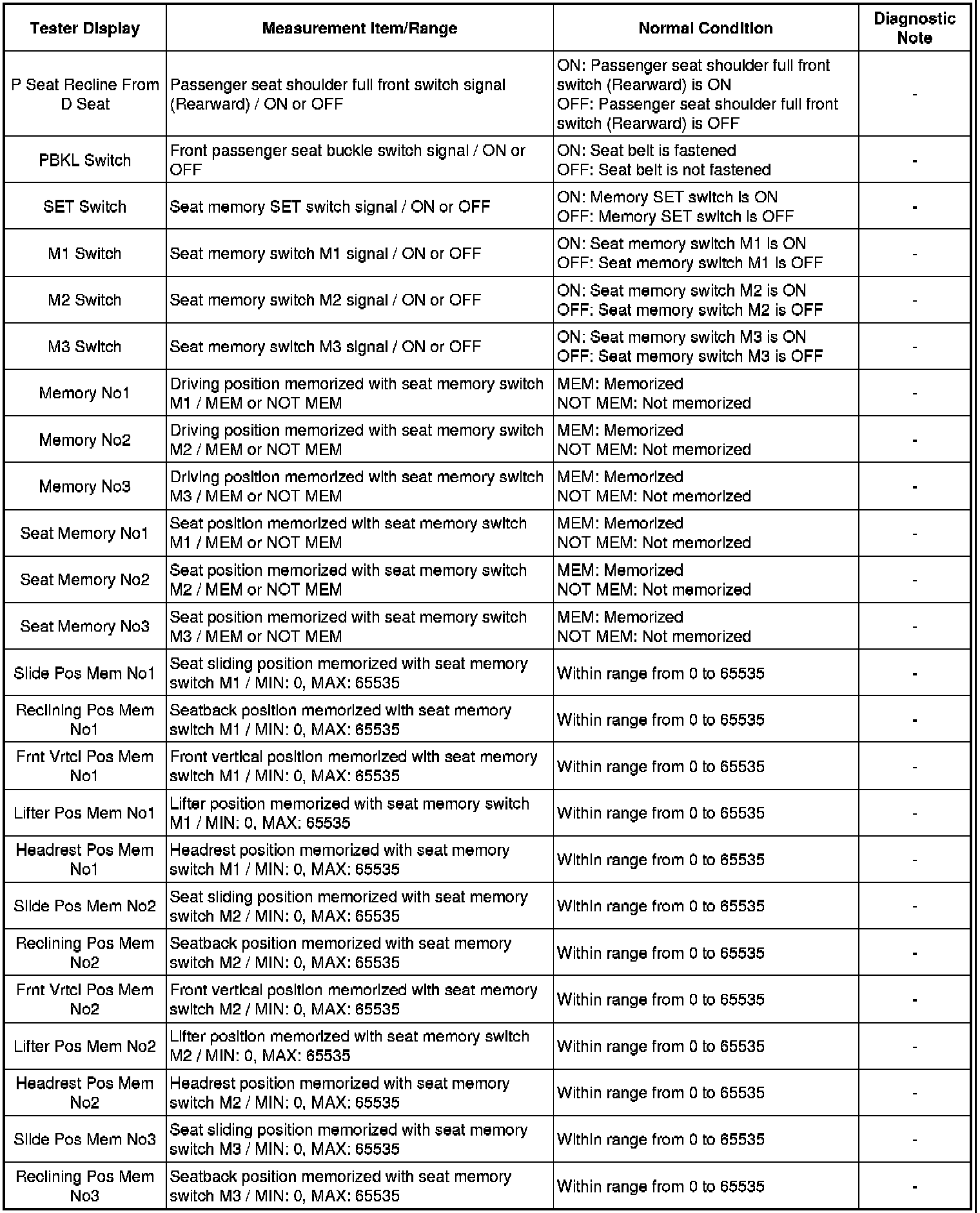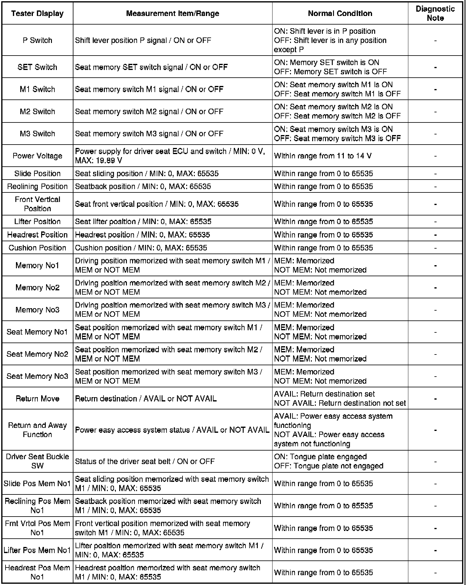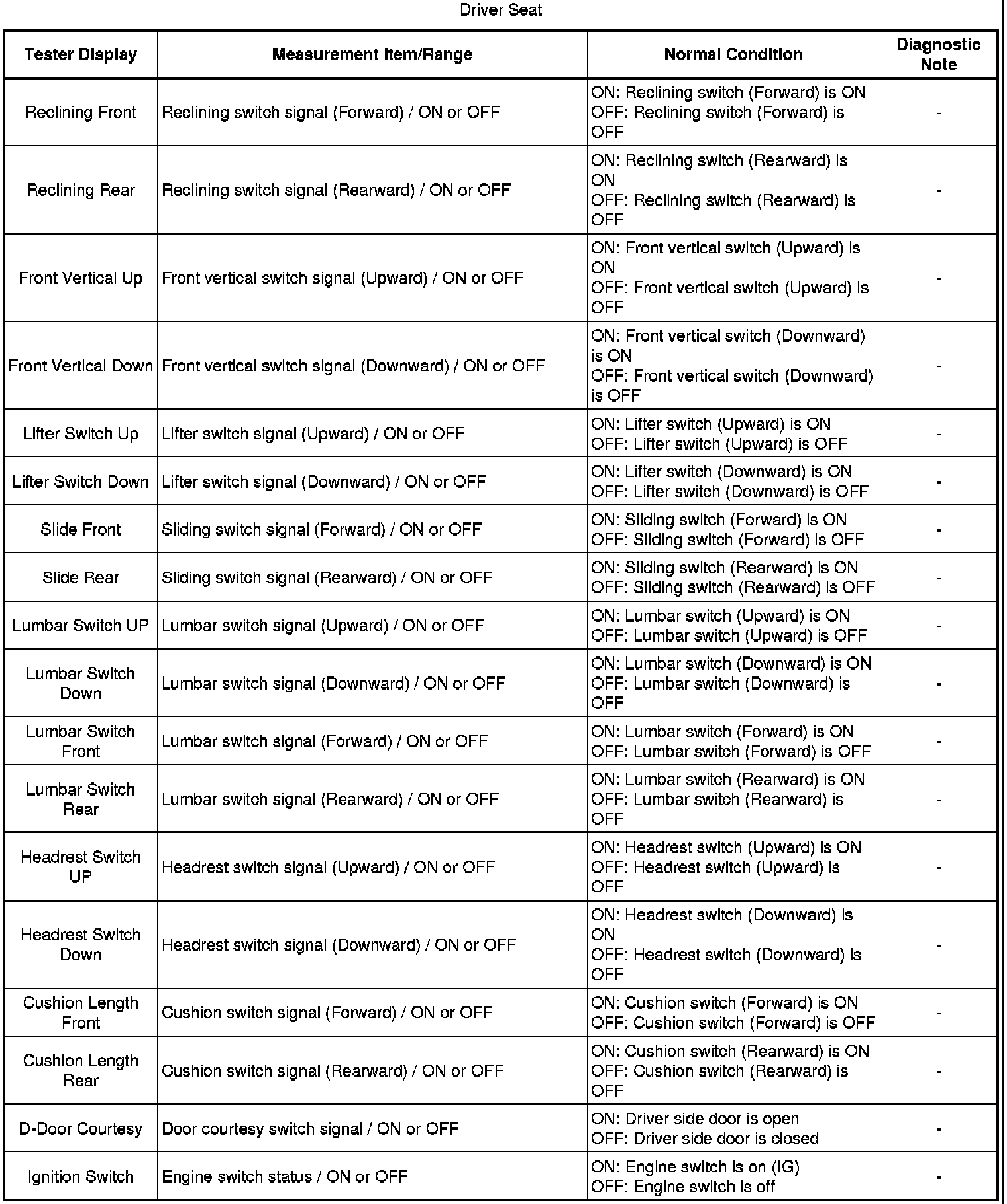 SEAT: FRONT POWER SEAT CONTROL SYSTEM: DATA LIST / ACTIVE TEST