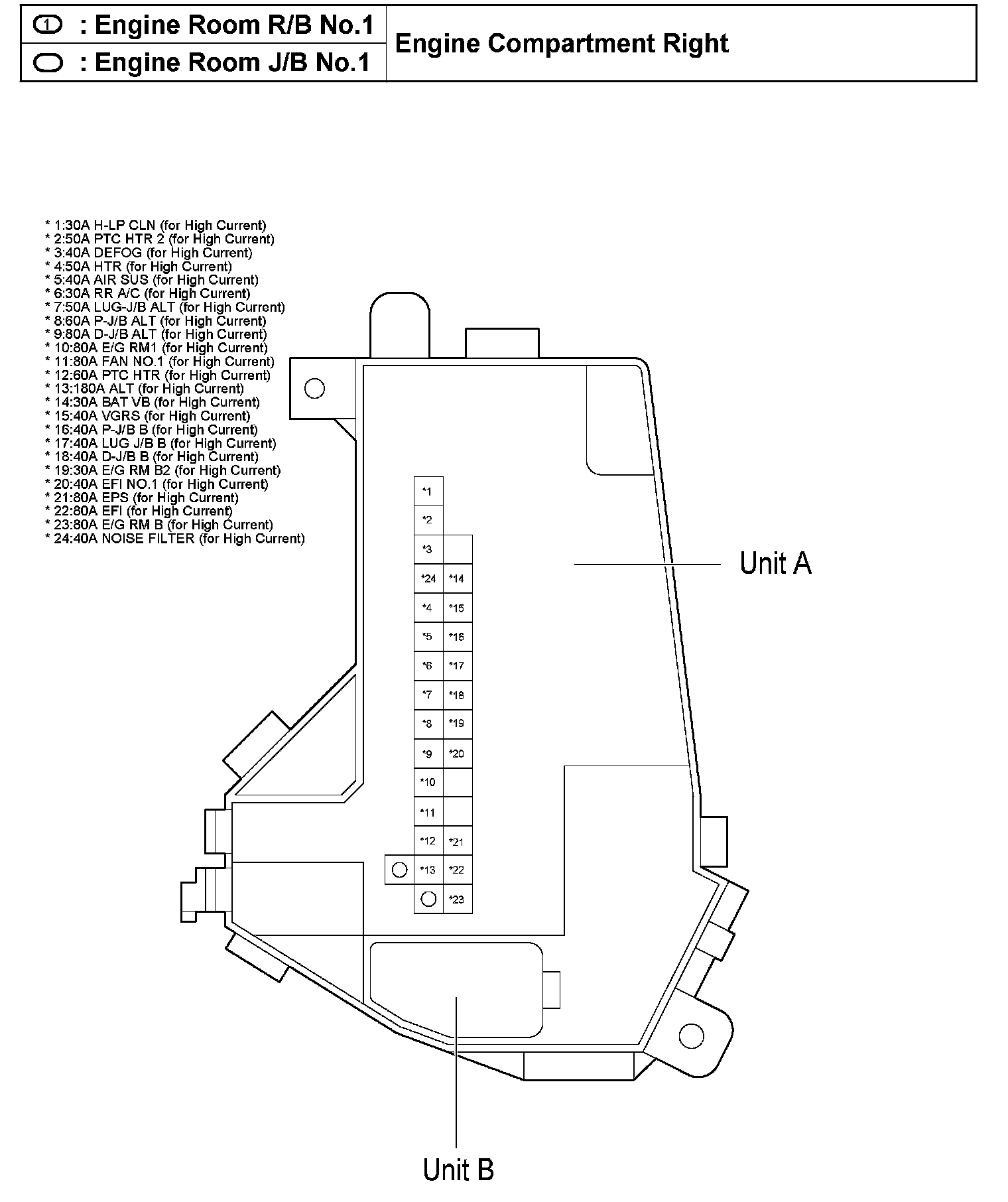 Engine Room R/B No.1/Engine Room J/B No.1 - Engine Compartment Right: