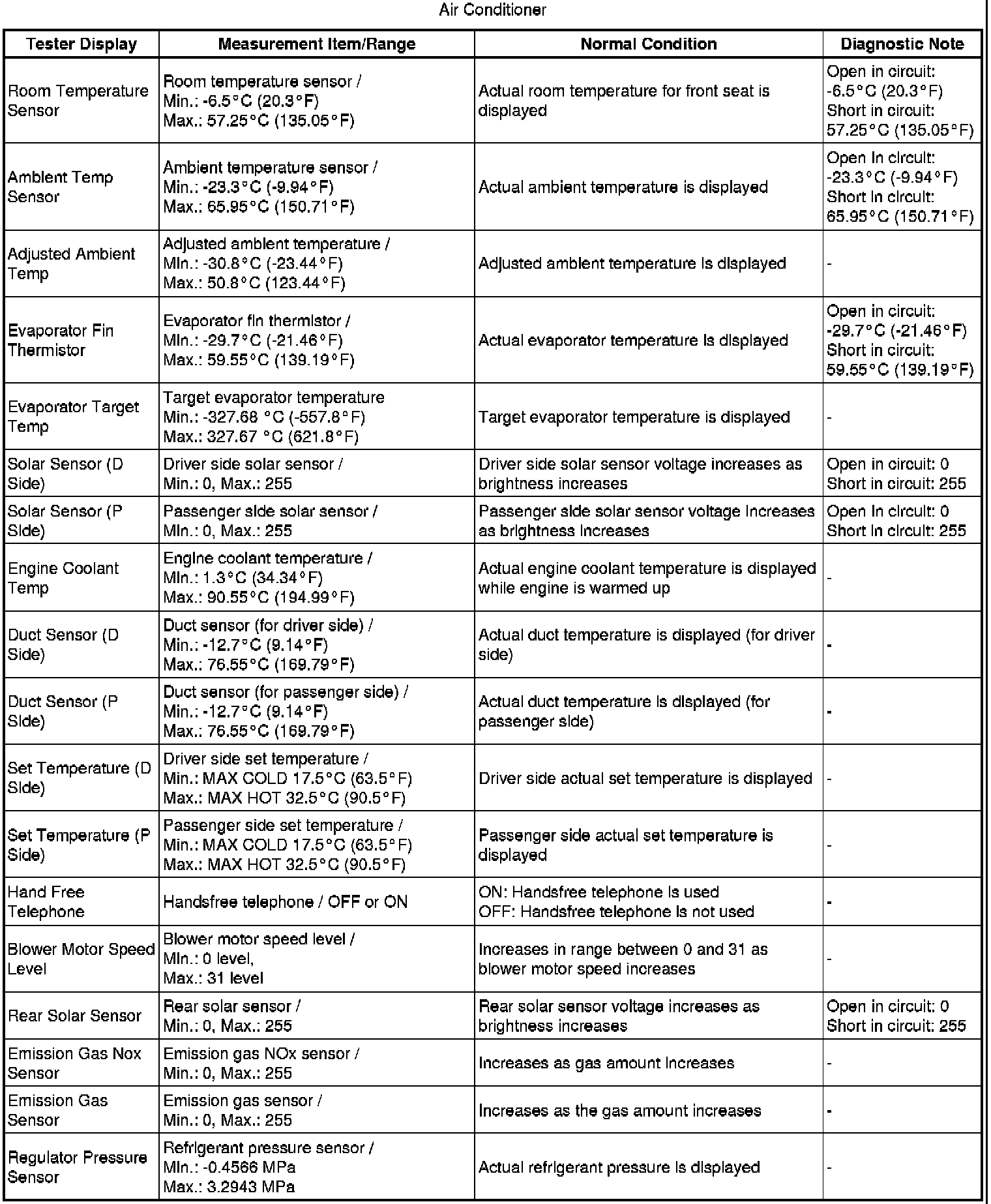 AIR CONDITIONING: AIR CONDITIONING SYSTEM: DATA LIST / ACTIVE TEST